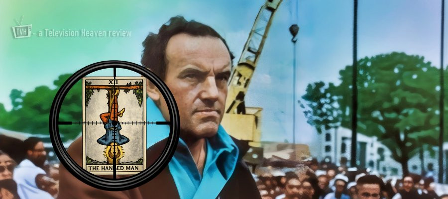 A jungle clearing in the Far East. A solitary hut. Inside, four soldiers retreat from an all consuming fire. Beyond a burning curtain, stretched out, the blanketed form of a human being